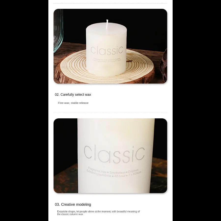 Handmade and non-mechanized mass production, so each candle cannot be guaranteed to be exactly the same.